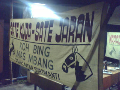 Sate kuda, jantan seperti kuda. Patut dicoba kalau berani. Banyak ditemui di daerah jawa dan sumbawa. Ada pula susu kuda lho :)- Sate dan rica-rica Landak